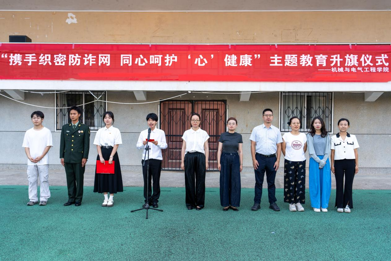 (通讯员:戚钰钒 )2025年10月9日早上7点整,机械与电气工程学院在武昌校区田径场举行“携手织密防诈网 同心呵护‘心’健康”主题教育升旗仪式。机械与电气工程学院班子成员、全体辅导员和学生参加了本次升旗仪式。
