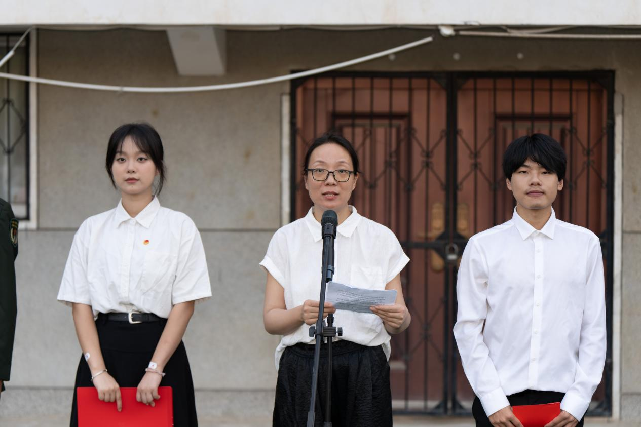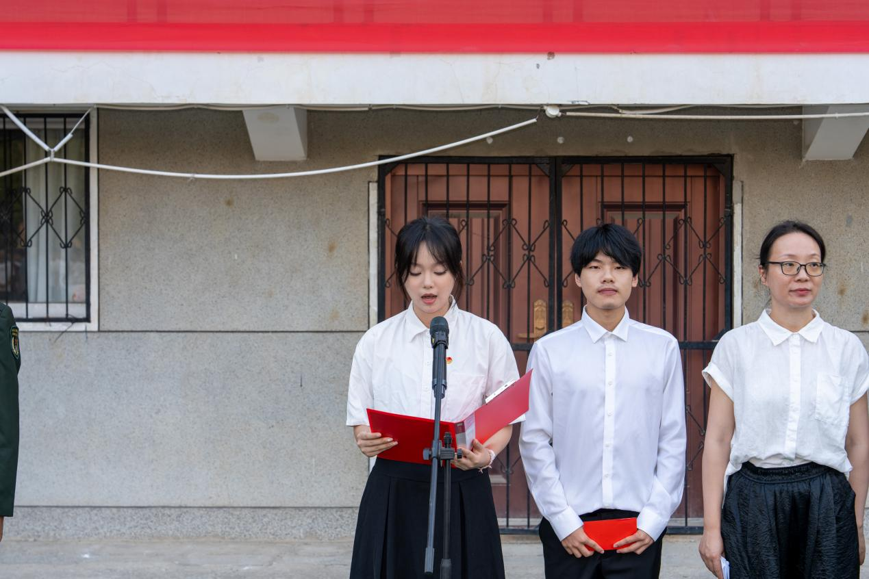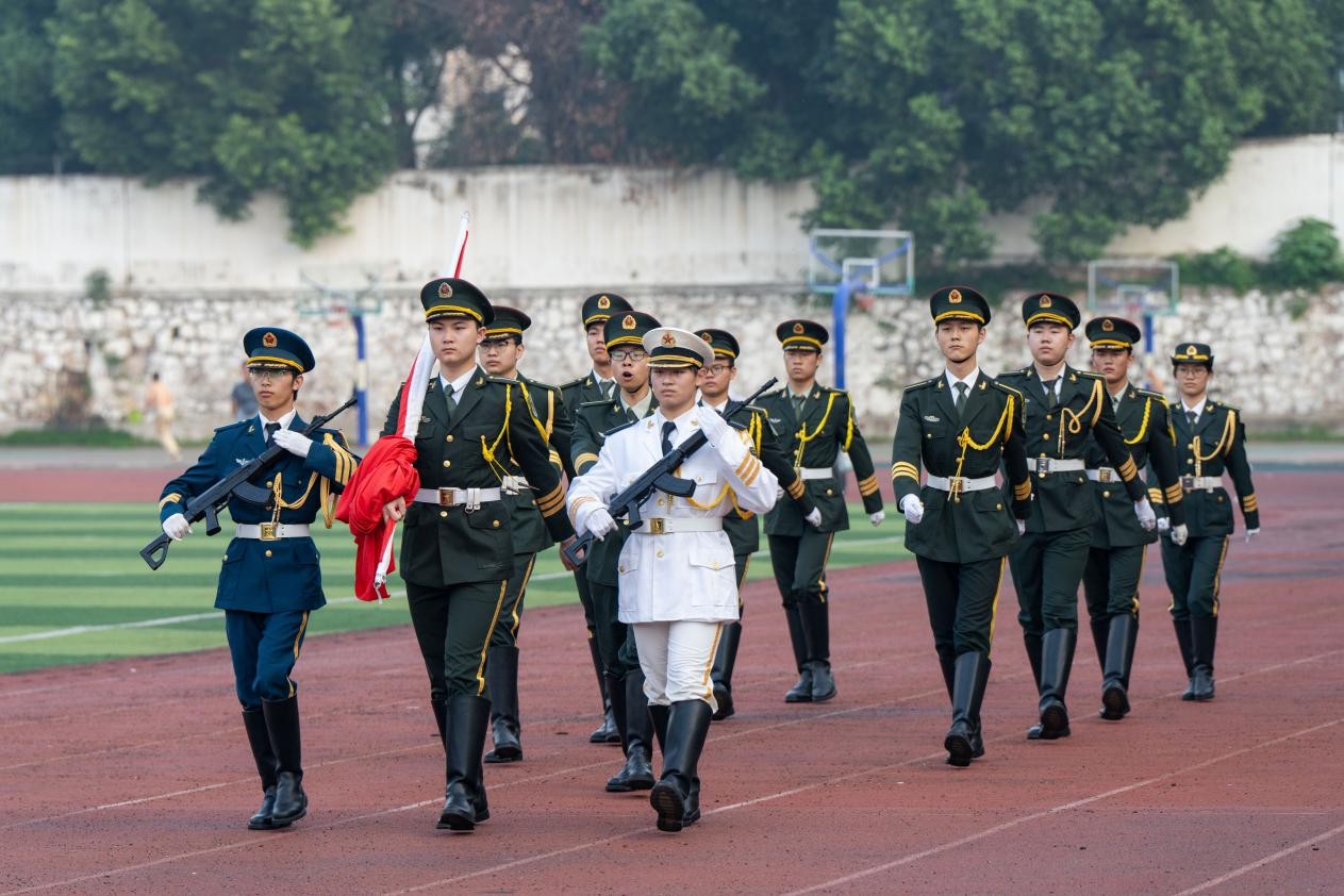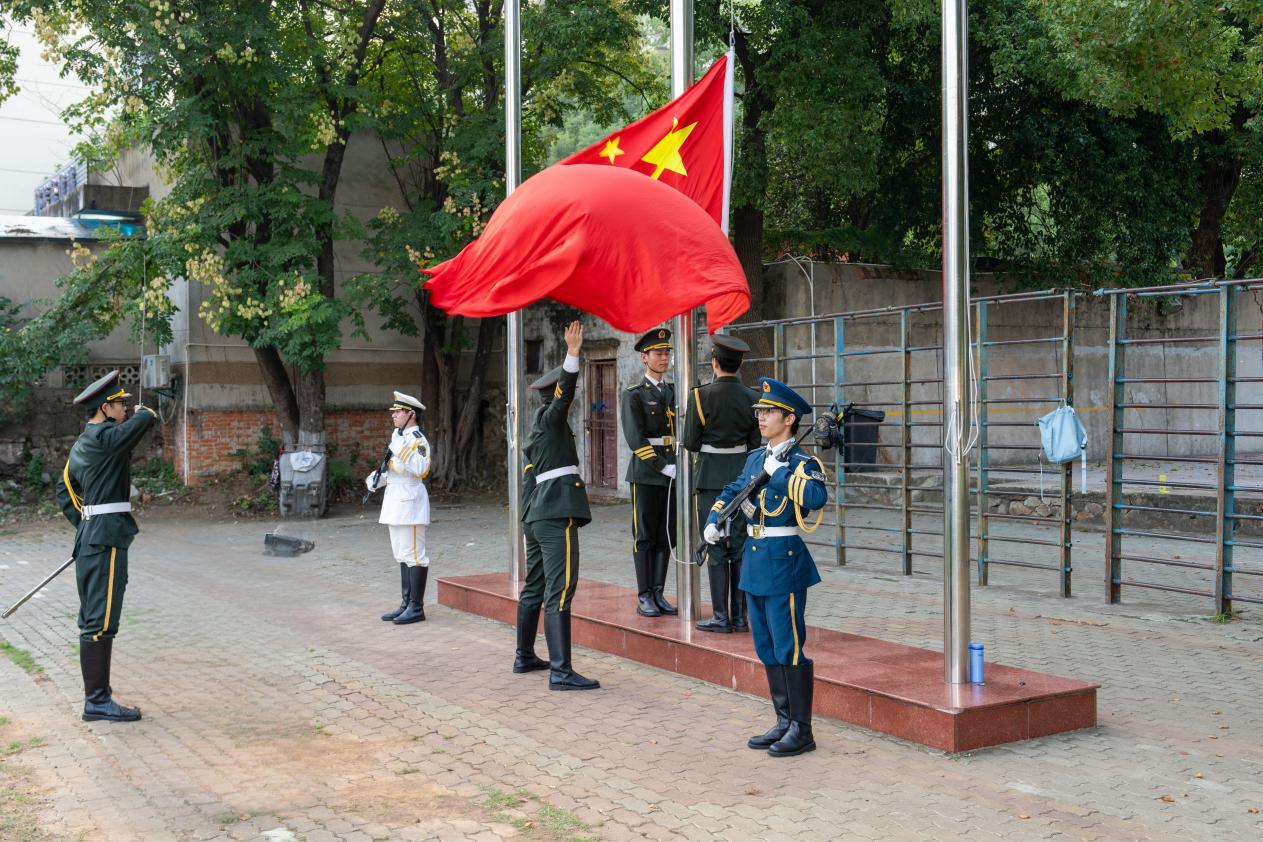 伴随着庄严肃穆的《义勇军进行曲》,五星红旗在全体师生的注视下冉冉升起,全体师生齐唱国歌,嘹亮的歌声在操场回荡,爱国情怀与责任担当在晨光中交融。