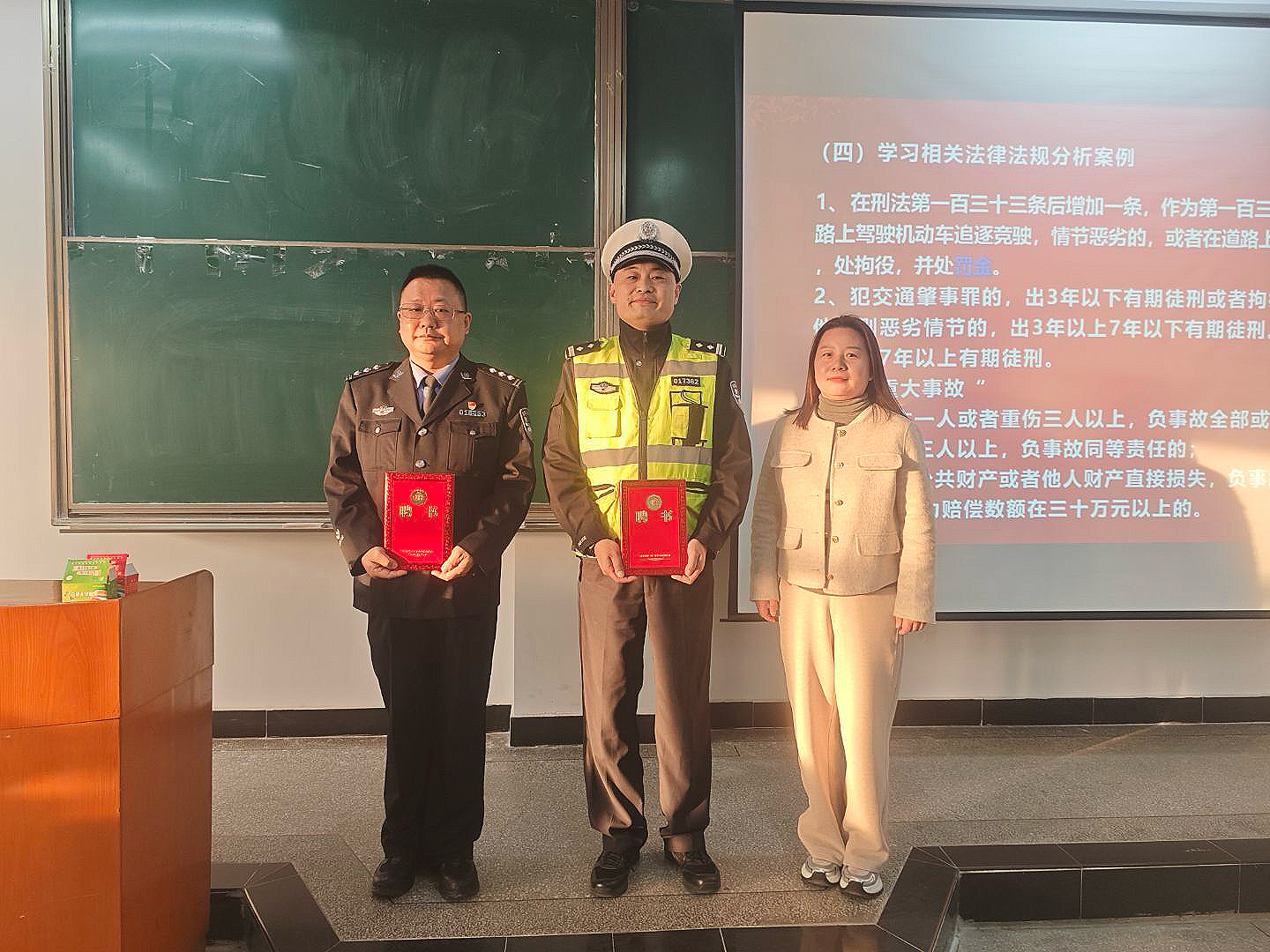最后,计算机与信息工程学院(人工智能学院)党总支书记徐章为武汉市公安局硚口区分局交通管理大队区杜泽文、漆彬两位警官颁发“校园安全导师”聘书。徐章表示,“安全是学校发展的基石,学院将持续开展交通安全教育活动,通过形式多样的宣传方式,将交通安全意识内化于心、外化于行,为创建平安校园贡献力量”。此次聘任仪式标志着学院与交管部门建立了长期合作关系,将为校园交通安全教育提供持续的专业支持。