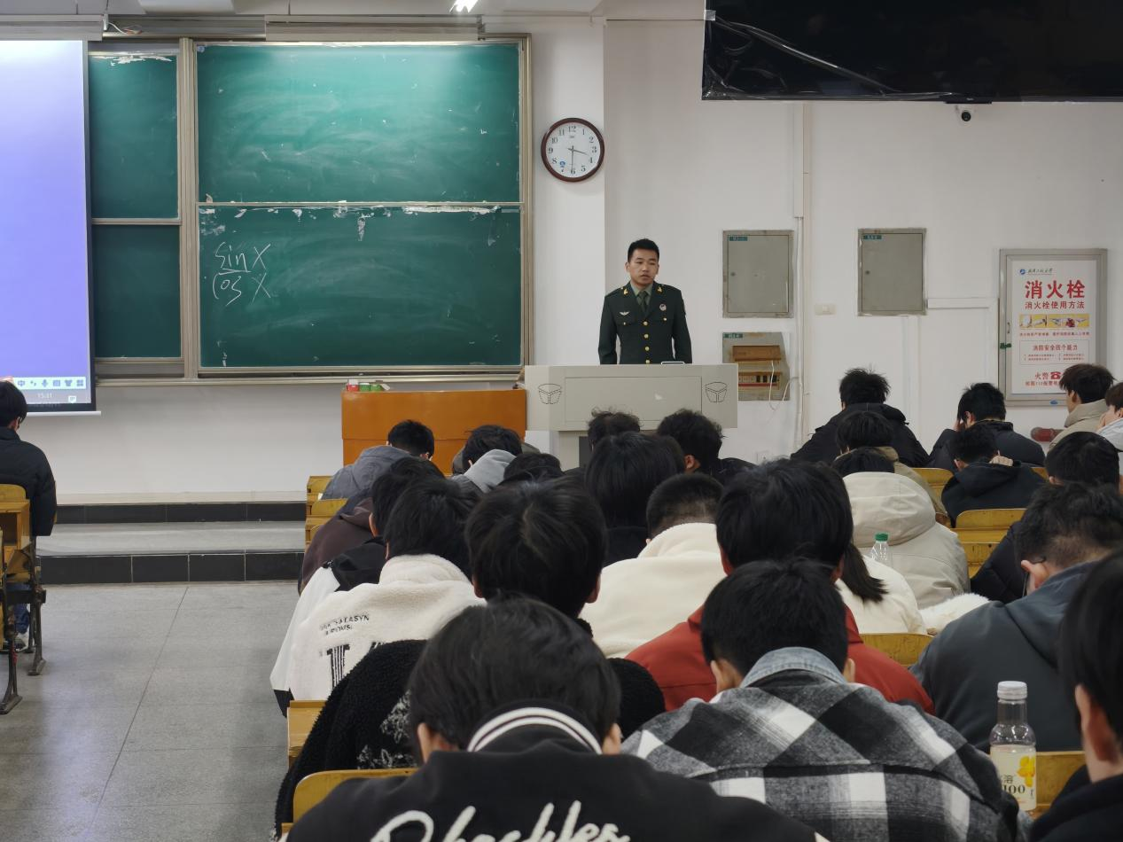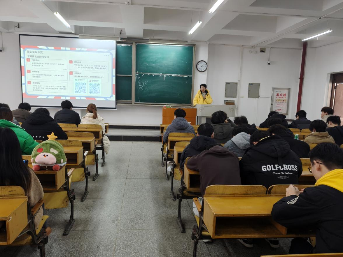 2025年12月15日下午3点,机械与电气工程学院2026年春季征兵宣讲会在3301教室顺利举行。本次宣讲会由征兵辅导员梁璐解读政策要点,退役士兵张浩杰、陈孟胜分享军旅体会,近百名学生积极参与。在场学子通过国防教育与政策宣讲,进一步坚定了报国初心,凝聚起参军热情。