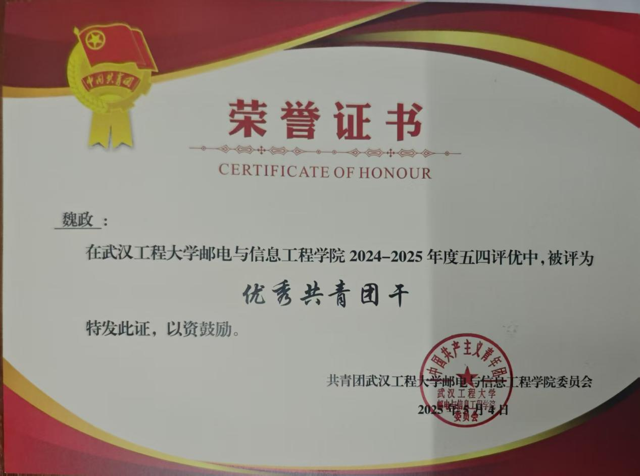 “星光不负赶路人,时光不负有心人。”魏政始终以此自勉,坚信每一份努力终将绽放光彩。展望未来,他将继续秉持务实笃行的态度,锤炼专业能力,担当青年责任,在自动化与物联网领域不断深耕,以实干与智慧服务社会、报效国家,书写无愧于时代的青春答卷。