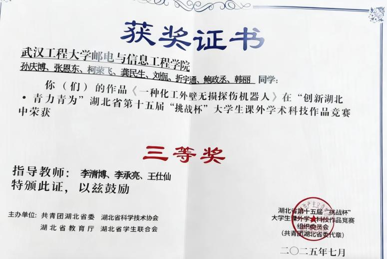 秉持“刻苦钻研、严于律己”的学风,张恩东在工业机器人专业领域勤奋学习,综测与专业课成绩均名列前茅。在掌握扎实理论知识的同时,他积极投身学科竞赛,在“挑战杯”省级竞赛、中国国际大学生创新大赛等赛事中屡获佳绩,体现出优秀的创新意识与实践能力。