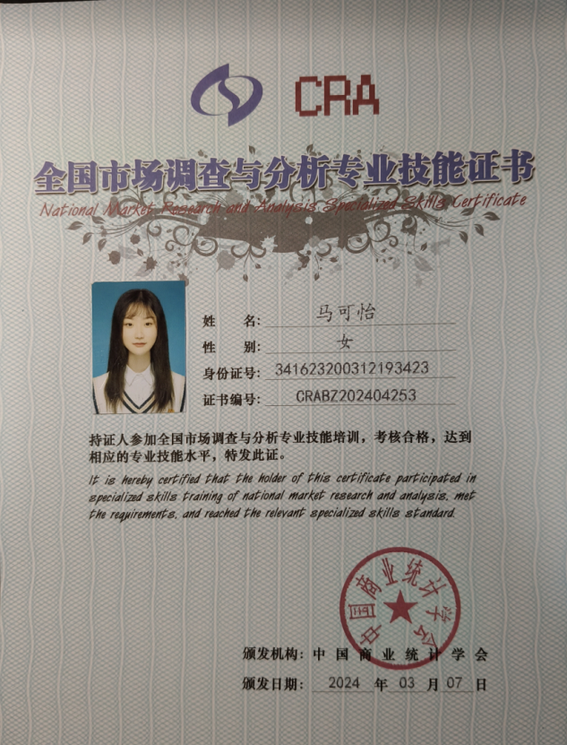 此外,在华为 ICT 大赛、全国大学生市场调查与分析大赛、全校大学生数学建模竞赛等多个赛事中,她同样凭借不懈的努力取得了优异成绩。每一项荣誉的背后,都凝聚着她与团队的汗水与智慧。备战竞赛期间,她常常放弃休息时间,泡在实验室、自习室,反复推敲方案、优化细节,面对难题不气馁、面对挑战不退缩,在攻坚克难中锤炼了坚韧不拔的意志品质,也深刻体会到了团队协作的强大力量。