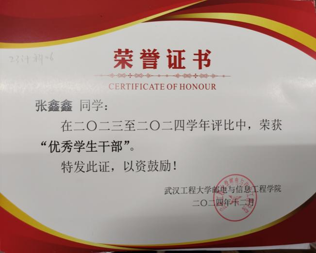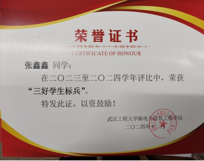 二、学业为帆,勤耕不辍攀高峰 “立身以立学为先,立学以读书为本。张鑫鑫深知专业学习的重要性,在平常的学习中积极努力,在此次班级综合素质测评中取得班级第一的成绩,这份成果源于他对学业的专注与不懈努力。他善于将碎片化时间转化为学习动力,课堂上紧跟老师思路,课后泡在图书馆钻研专业知识、打磨方案,主动将课堂所学转化为实践能力。他积极投身各类专业竞赛,在一次次备赛与比拼中突破自我,不仅锤炼了专业技能,更培养了攻坚克难的毅力。他始终保持谦逊的学习态度,将每一次进步都当作新的起点,以勤耕不辍的姿态在知识的海洋中勇毅前行。此外,他考取普通话证书,不断提升自身综合素养,让思想的光芒在成长路上持续闪耀。 三、实践为翼,躬身实干长才干 在工作实践的舞台上,张鑫鑫始终秉持“服务同学、锻炼自我”的初心。作为班级班长,他是老师与同学之间的桥梁,主动倾听班级同学的需求,认真准备各项活动,提高班级凝聚力;面对班级事务,他善于沟通协调、团结协作,带领班委团队高效完成各项工作。曾经在团总支学生会社会实践部担任干事及就业促进协会成员期间,他积极参与各项活动,积极配合老师完成工作,参与企业宣讲会筹备、就业信息整理等事务,在实践中提升了组织协调与统筹规划能力。这些经历让他深刻体会到,个人的成长离不开集体的土壤,服务他人的过程亦是自我成长的过程,也让他凭借这些工作表现获评三好学生标兵、优秀学生干部等称号。