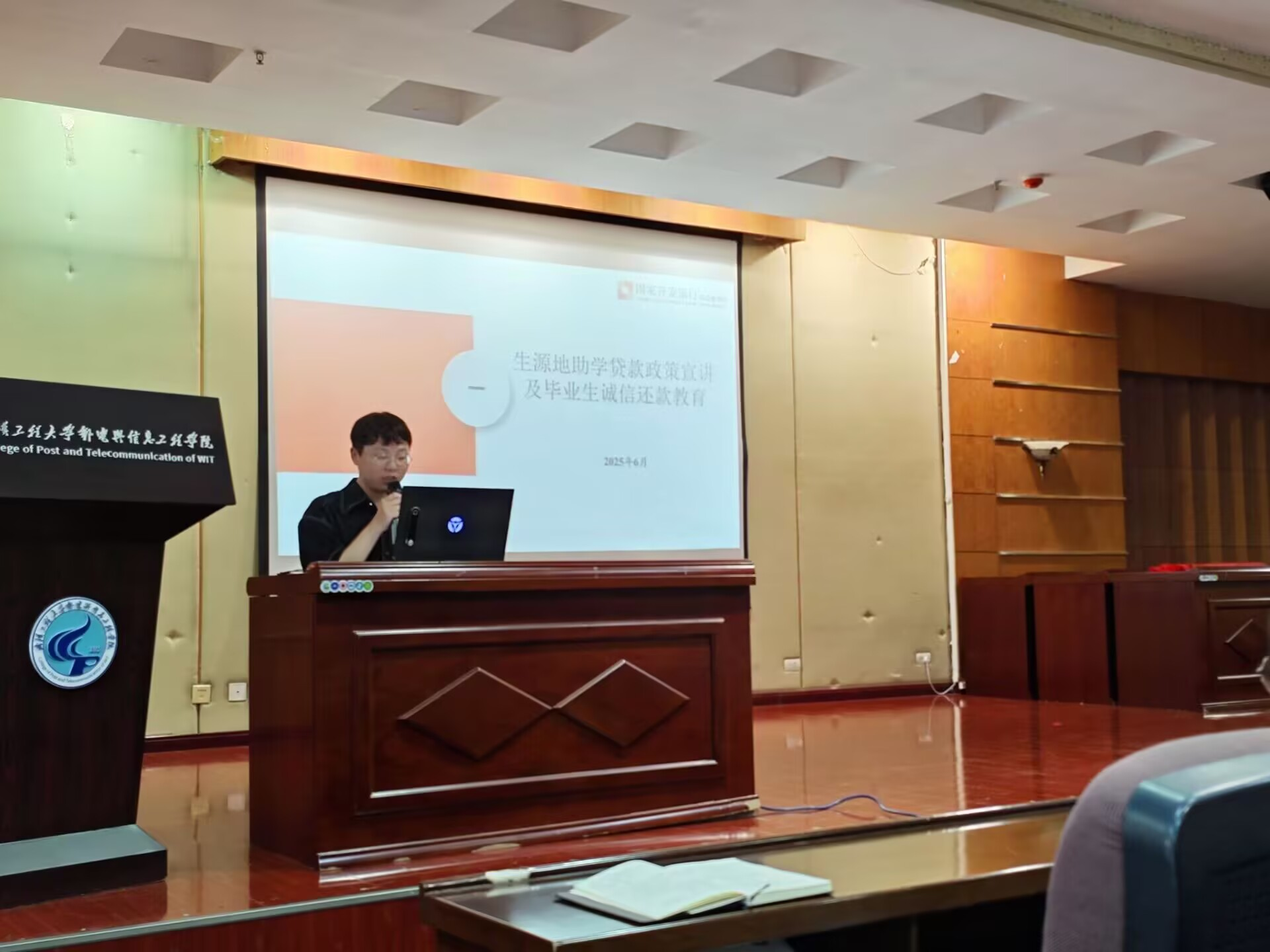 (通讯员:彭晶、彭雄骞、黄斯思)为深入贯彻落实国家资助政策,帮助学生全面了解生源地助学贷款的政策,缓解求学压力;提高学生对各类诈骗手段的识别能力和防范意识,筑牢安全防线。2025年6月5日下午由学生工作部主办、计算机与信息工程学院、化工与材料工程学院和建筑工程学院联合承办的生源地信用助学贷款宣传及防诈知识讲座在3601举行。活动由化材学院党总支副书记彭晶主持。